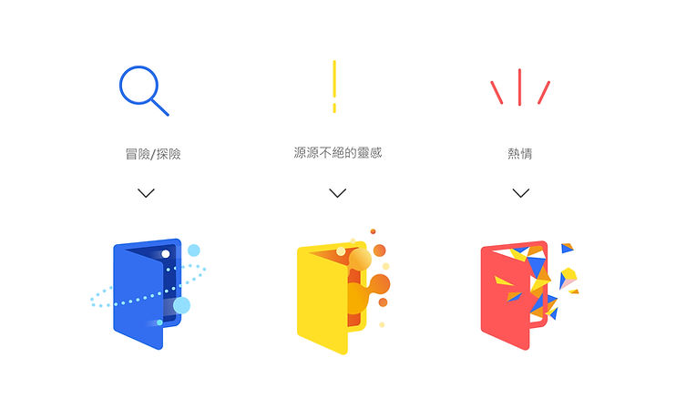 確立品牌形象後,便以「冒險」、「靈感」、「熱情」三大關鍵字為主軸,檢視目前品牌視覺上需修正處,運用設計要素建立完整的品牌識別系統。
